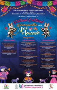 Villa de Álvarez, Col- La Presidenta Tey Gutiérrez Andrade presentó el programa del “Festival Reencuentro con el ser amado”, con el que el Ayuntamiento de Villa de Álvarez los días 31 de octubre, 1 y 2 de noviembre celebrará el Día de Muertos.