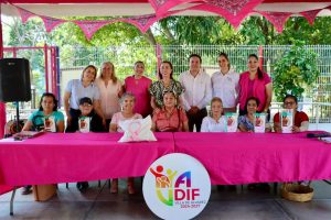 A la entrega de mangas de linfedema asistieron el Doctor Carlos Juárez; la Secretaria del Ayuntamiento, Lizet Rodríguez; la Directora del DIF Villa de Álvarez, Martha Yadira Martínez; la Coordinadora del Voluntariado del DIF, Cinthia Vinaja, además de patrocinadores y patrocinadoras de los servicios otorgados a mujeres sobrevivientes de cáncer de mama.