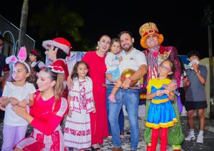 Villa de Álvarez, Col.- La Presidenta Tey Gutiérrez Andrade encabezó el encendido del Árbol de Navidad y de las luces de los arreglos navideños en el Jardín Principal de Villa de Álvarez, que sirvió de marco para realizar un festival en el que se presentó el Show de Betún.