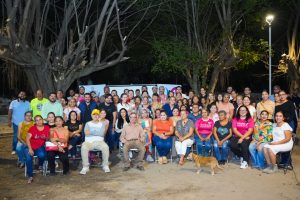 A la entrega de la obra de alumbrado púbico en el jardín de la colonia Juan José Ríos I asistieron la Secretaria del Ayuntamiento, Lizet Rodríguez; las regidoras Teresa Ramírez y Mary Rubio; la Presidenta del Comité de Barrio de la colonia Del Valle, Rosario Ramírez López, y funcionarios y funcionarias municipales.