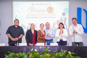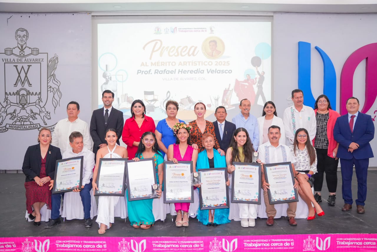 Villa de Álvarez, Col.- En Sesión Solemne del Cabildo de Villa de Álvarez, la Presidenta Tey Gutiérrez Andrade, el Síndico y las y los Regidores entregaron la Presea al Mérito Artístico “Profesor Rafael Heredia Velasco”, a lo más destacado de la cultura y las artes en el municipio durante el año 2025.