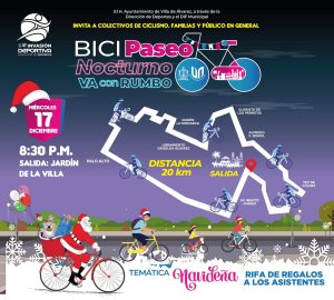 Villa de Álvarez, Col.- Con un recorrido por las principales avenidas de Villa de Álvarez, este miércoles 17 de diciembre la comunidad ciclista celebrará las fiestas decembrinas, con el Bici Paseo Va con Rumbo, cuya temática será navideña.