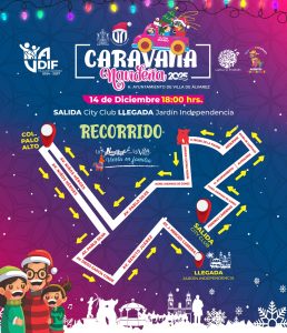 La Alcaldesa señaló que la Caravana Navideña se realizará este domingo 14 de diciembre, arrancando en la esquina de las avenidas Federico Cárdenas Barajas y María Ahumada de Gómez, en la tienda City Club, a las 18:00 horas, para culminar el recorrido en el Jardín Independencia (Jardín Principal).