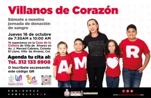 Villa de Álvarez, Col.- El Ayuntamiento de Villa de Álvarez, en coordinación con Donadores Compulsivos, invitan a sumarse a la jornada de donación de sangre “Villanos de Corazón”, con la finalidad de apoyar a personas que la requieran.