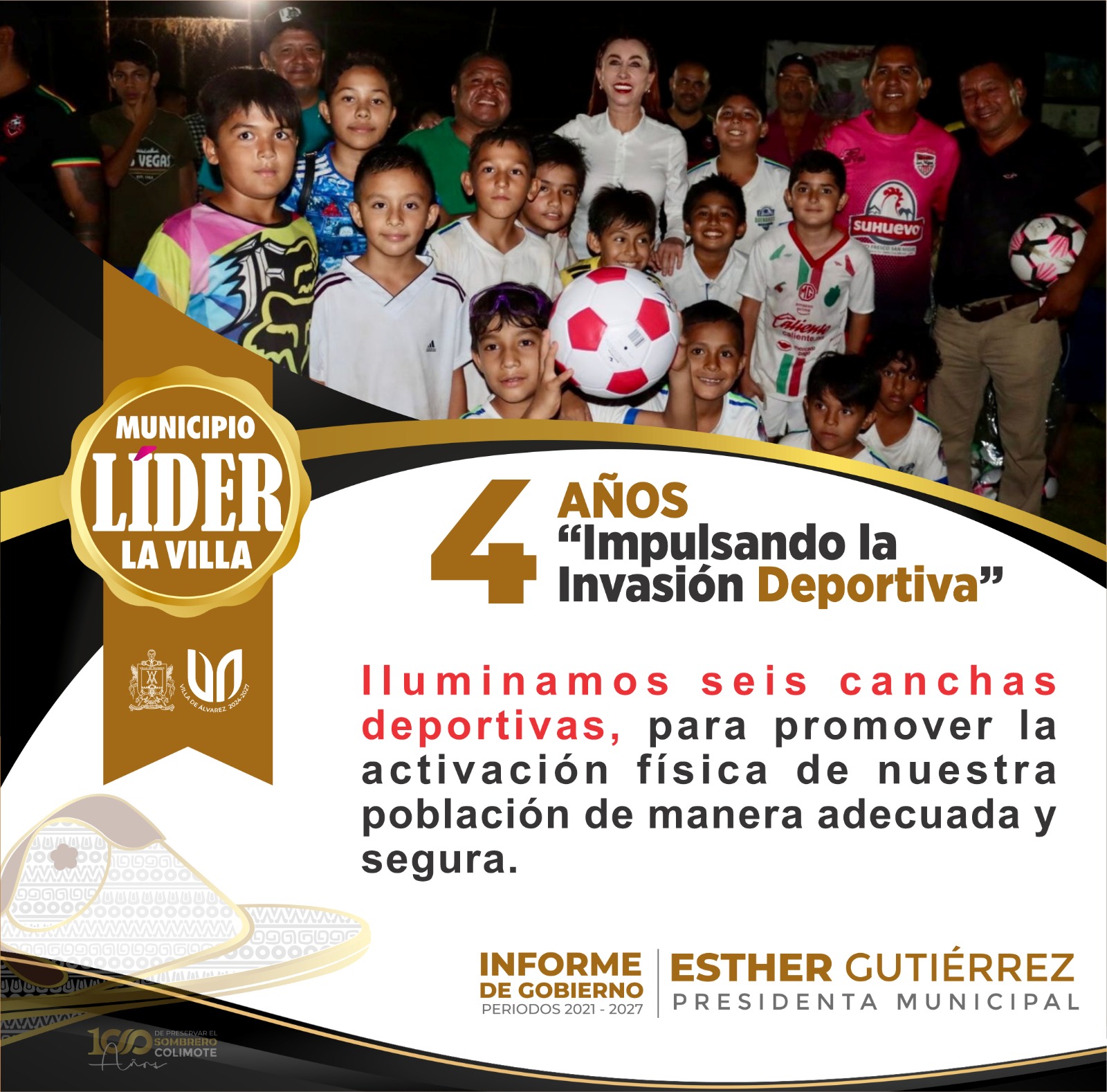 En el marco de su Cuarto Informe de Gobierno que se realizará el miércoles 3 de diciembre, Gutiérrez Andrade destacó que atendiendo y escuchando a los deportistas, este año se iluminaron los campos deportivos de las colonias Alfredo V. Bonfil, Ramón Serrano y Villas de Oro, así como las canchas de usos múltiples de las colonias Loma Bonita e Higueras del Espinal, además del campo del Club Deportivo Dragones.