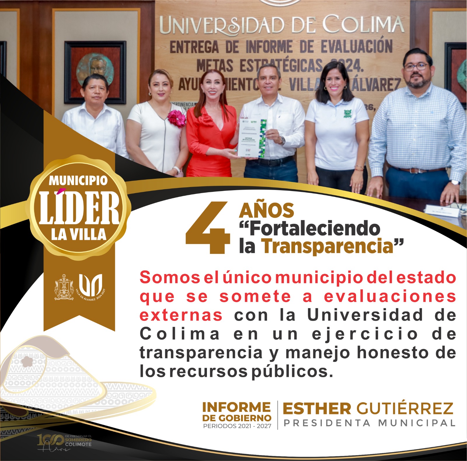Gutiérrez Andrade aseguró que Villa de Álvarez es el único municipio en el estado que tiene un programa anual de gobierno ordenado en Metas Estratégicas, cuyo cumplimiento es evaluado de manera externa por la Universidad de Colima, en un ejercicio de transparencia y rendición de cuentas.
