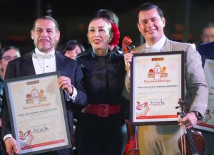 La Presidenta de Villa de Álvarez, Tey Gutiérrez Andrade, acompañada por Christian Torres Ortiz Zermeño, Rector de la Universidad de Colima, agradeció al funcionario universitario haber otorgado las facilidades para tener en la Plaza de Toros La Petatera ese evento artístico y cultural de gran nivel, por lo que le entregó un reconocimiento.