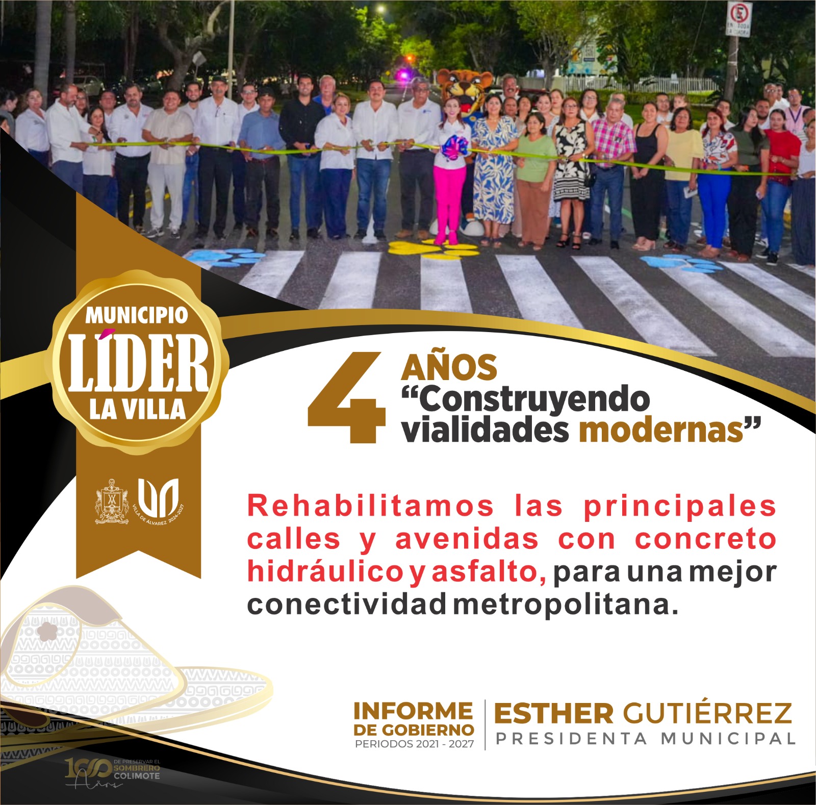Mencionó que tan solo en 2025, atendiendo una demanda muy sentida de la población, se rehabilitaron alrededor de 4 kilómetros de calles y avenidas con asfalto, para una mejor conectividad metropolitana entre Colima y Villa de Álvarez.