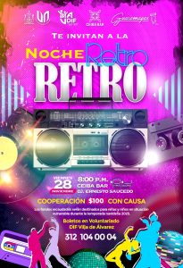 Villa de Álvarez, Col.- Para apoyar a niñas y niños en situación de vulnerabilidad en la temporada navideña, el Ayuntamiento de Villa de Álvarez, el DIF Municipal, La Ceiba Bar y el Restaurante Las Guacamayas celebrarán una Noche Retro con Causa.