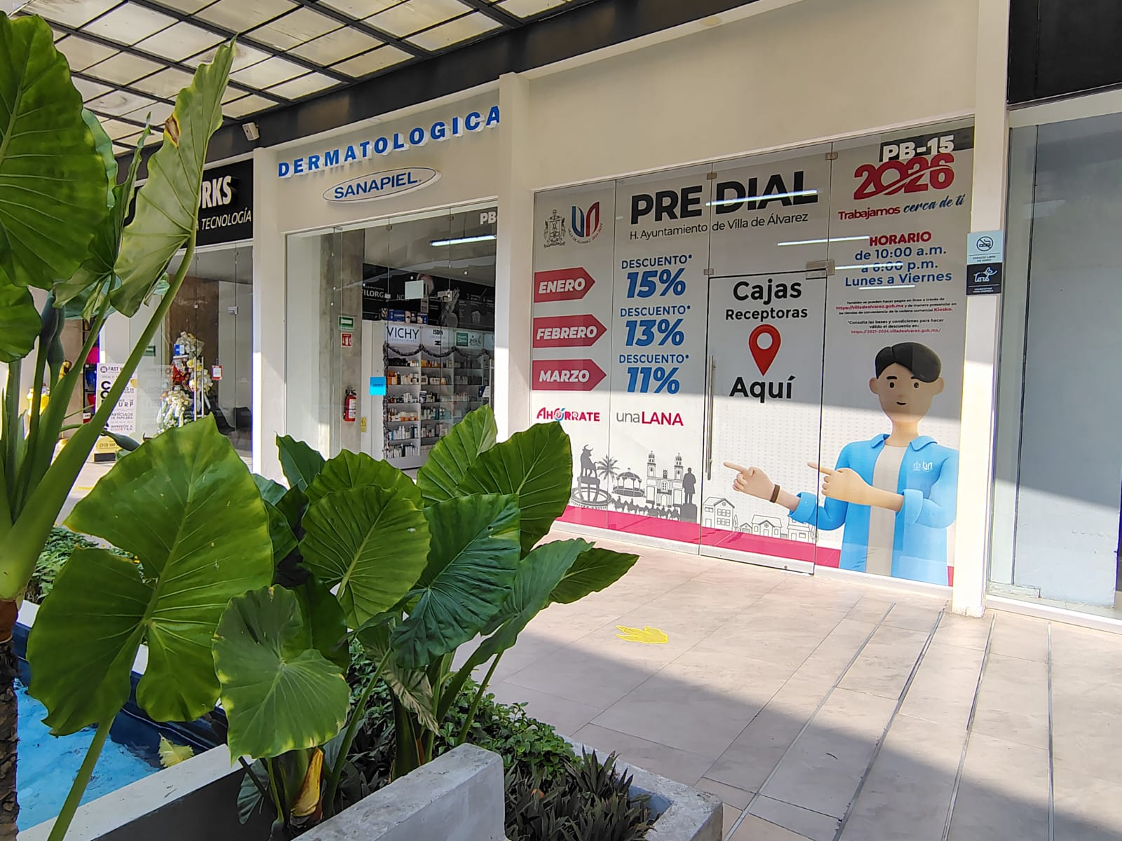 “Por contar con un amplio estacionamiento, esta nueva caja receptora de pagos de Plaza Sendera resulta muy cómoda para las y los contribuyentes del municipio de Villa de Álvarez, la cual funciona de lunes a viernes en horario de 10:00 de la mañana a 6:00 de la tarde”, señaló la Presidenta Municipal.