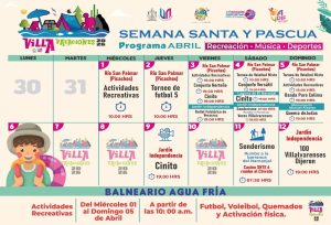 También en el balneario Agua Fría habrá actividades recreativas del primero al 5 de abril a partir de las 10:00 de la mañana, entre las que se encuentran juegos de futbol, voleibol, quemados y activación física.