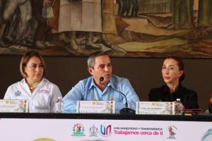 En la conferencia de prensa acompañaron a la Presidenta Municipal y al Rector Universitario el Síndico José Santos Dolores; la Secretaria del Ayuntamiento, Lizet Rodríguez; el Director de Fomento Cultural y Educativo, Marcos Gómez, y Elizabeth González Fregoso, ganadora de la Presea al Mérito “General Pedro Torres Ortiz” 2024 en la Categoría Promoción de la Participación Ciudadana.