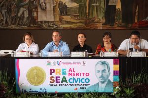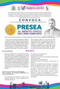 Villa de Álvarez, Col.- La Presidenta Tey Gutiérrez Andrade, y el Rector de la Universidad de Colima, Christian Torres Ortiz Zermeño, presentaron la Convocatoria a la Presea al Mérito Cívico “General Pedro Torres Ortiz”, con la que el Ayuntamiento de Villa de Álvarez visibilizará y reconocerá el esfuerzo de las y los villalvarenses destacados en diferentes ámbitos de las humanidades.