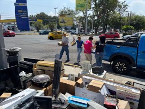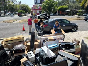 En esta ocasión se colectaron televisiones análogas, pantallas planas, planchas, computadoras, bocinas, ventiladores, impresoras, cables, teléfonos, radios, hornos de microondas, cafeteras, licuadoras, audífonos, discos duros, lámparas, scanners, lap top, video caseteras, proyectores, teclados, taladros, focos y pilas, entre otros.
